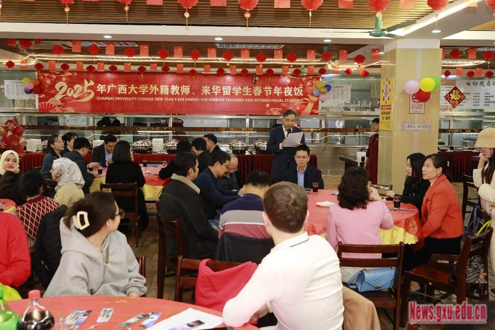 នៅថ្ងៃទី 23 ខែមករា សាកលវិទ្យាល័យក្វាងស៊ី (GXU) បានរៀបចំពិធីជប់លៀងបុណ្យនិទាឃរដូវឆ្នាំ 2025 សម្រាប់គ្រូបង្រៀនបរទេស និងនិស្សិតអន្តរជាតិ។ លោកសាស្រ្តាចារ្យបណ្ឌិត Xiao Jianzhuang នាយករងនៃសាកលវិទ្យាល័យGXU ក៏បានមានវត្តមានក្នុងព...