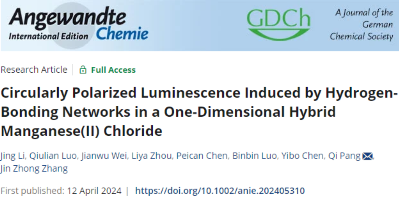 ດົນມານີ້, ທີມງານອຸປະກອນການທໍາງານຂອງ Photoelectric ຢູ່ໂຮງຮຽນເຄມີສາດ ແລະ ວິສະວະກໍາເຄມີຂອງມະຫາວິທະຍາໄລຂອງພວກເຮົາໄດ້ບັນລຸຜົນສໍາເລັດອັນສໍາຄັນໃນຂົງເຂດການປະສົມອິນຊີ-ອະນົງຄະທາດ manganese halide Circularly Polarized Luminescence (CPL). ຜົນການຄົ້ນຄວ້າດັ່ງກ່າວໄດ້ພິມເຜີຍແຜ່ໃນ Angewandte Chemie International Edition, ວາລະສານສາກົນທີ່ມີຊື່ສຽງໃນຂະແຫນງເຄມີສາດ. ບົດຂຽນທີ່ມີຫົວຂໍ້ວ່າ "ແສງສະຫວ່າງຂົ້ວໂລກສະແດງໃຫ້ເຫັນໂດຍເຄືອຂ່າຍການເຊື່ອມທາດໄຮໂດເຈນໃນມິຕິລະມິຕິປະສົມ Manganese (II) chloride" ແມ່ນປະພັນໂດຍ Li Jing ຜູ້ສະຫມັກປະລິນຍາເອກຈາກໂຮງຮຽນເຄມີແລະວິສະວະກໍາເຄມີທີ່ຮຽນຈົບໃນປີ 2020. ສາດສະດາຈານ Pang Qi ຈາກໂຮງຮຽນດຽວກັນເປັນຜູ້ຂຽນ ນອກຈາກນັ້ນ, ມະຫາວິທະຍາໄລກວາງຊີໄດ້ຮັບການຍອມຮັບວ່າເປັນສາຂາຕົ້ນຕໍສໍາລັບການພິມເຜີຍແຜ່ນີ້
