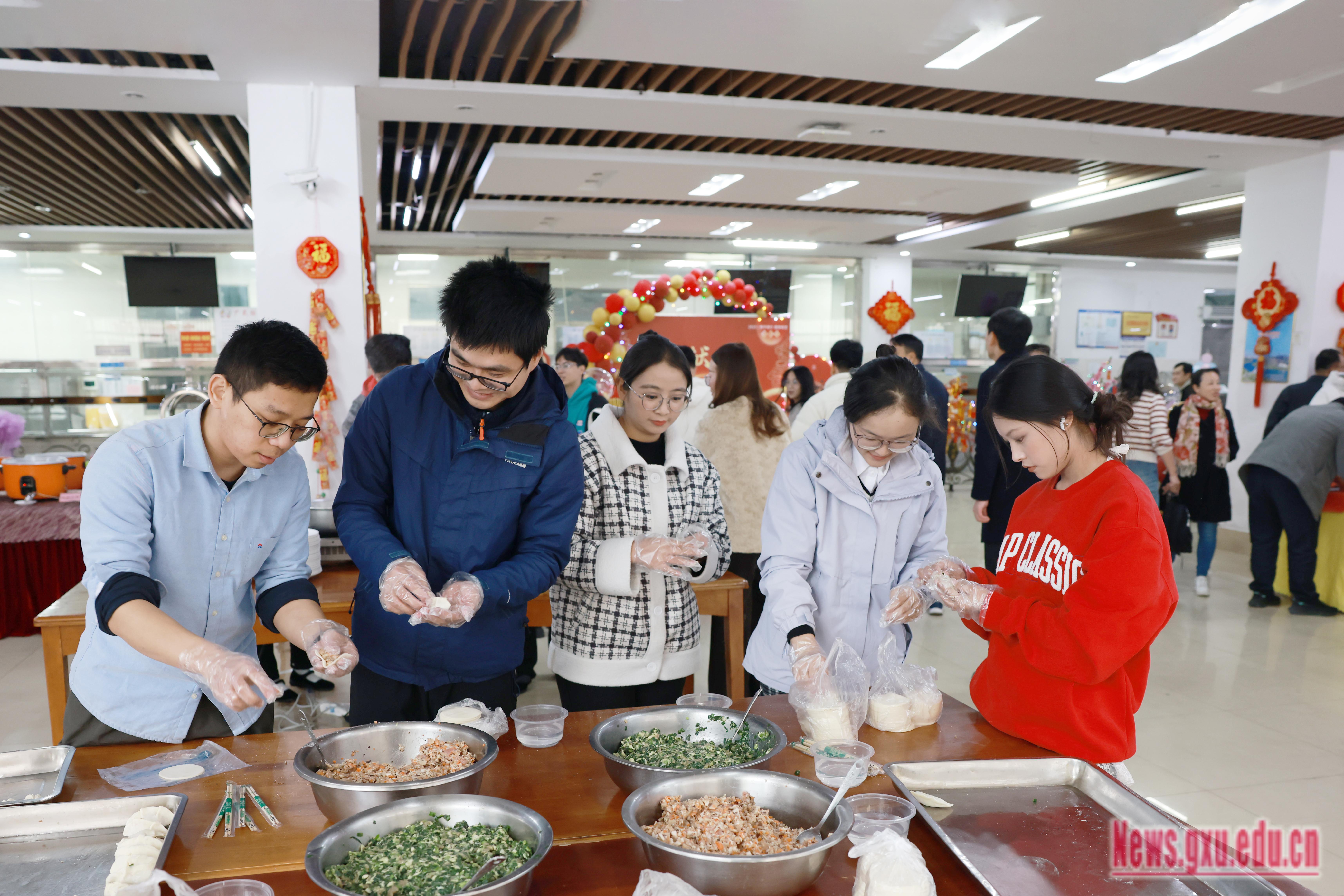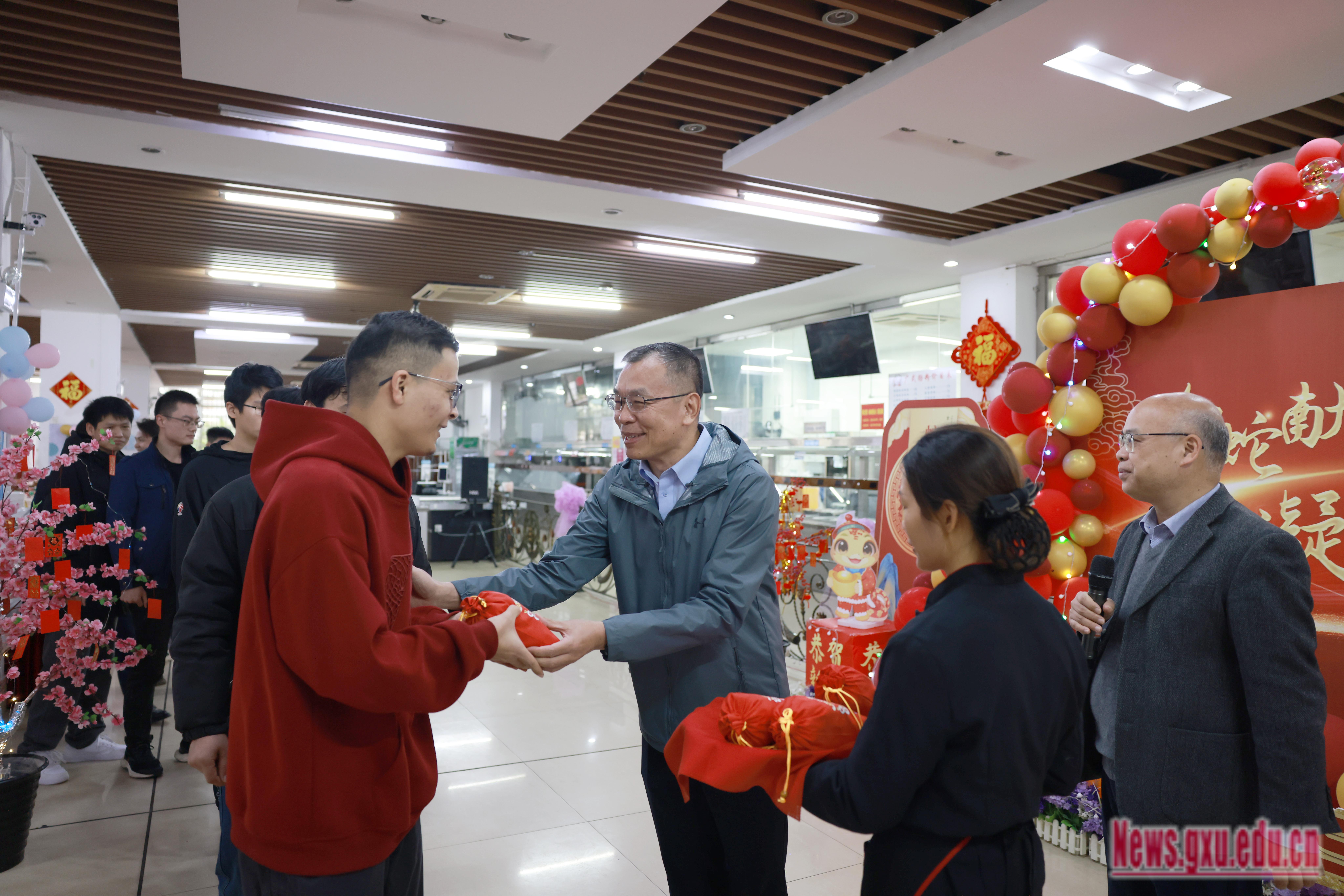 ຢູ່ທີ່ຮ້ານອາຫານ Cuiyuan, Han Linhai, ໃນນາມຂອງ GXU ໄດ້ມອບຖົງໂຊກໃນບຸນລະດູໃບໄມ້ປົ່ງໃຫ້ນັກຮຽນ. ລາວຍັງໄດ້ເຂົ້າຮ່ວມກັບເຂົາເຈົ້າໃນການຂຽນຕົວອັກສອນຈີນ "" (ໂຊກລາບ), ເຮັດເຂົ້າໜົມເປັດ, ຮັບປະທານອາຫານຄ່ຳວັນບຸນກຸດຈີນ, ແລະສົນທະນາກັນຢ່າງອົບອຸ່ນ. sceneໄດ້ເຕັມໄປດ້ວຍຄວາມສຸກແລະຄວາມສຸກງານບຸນ.