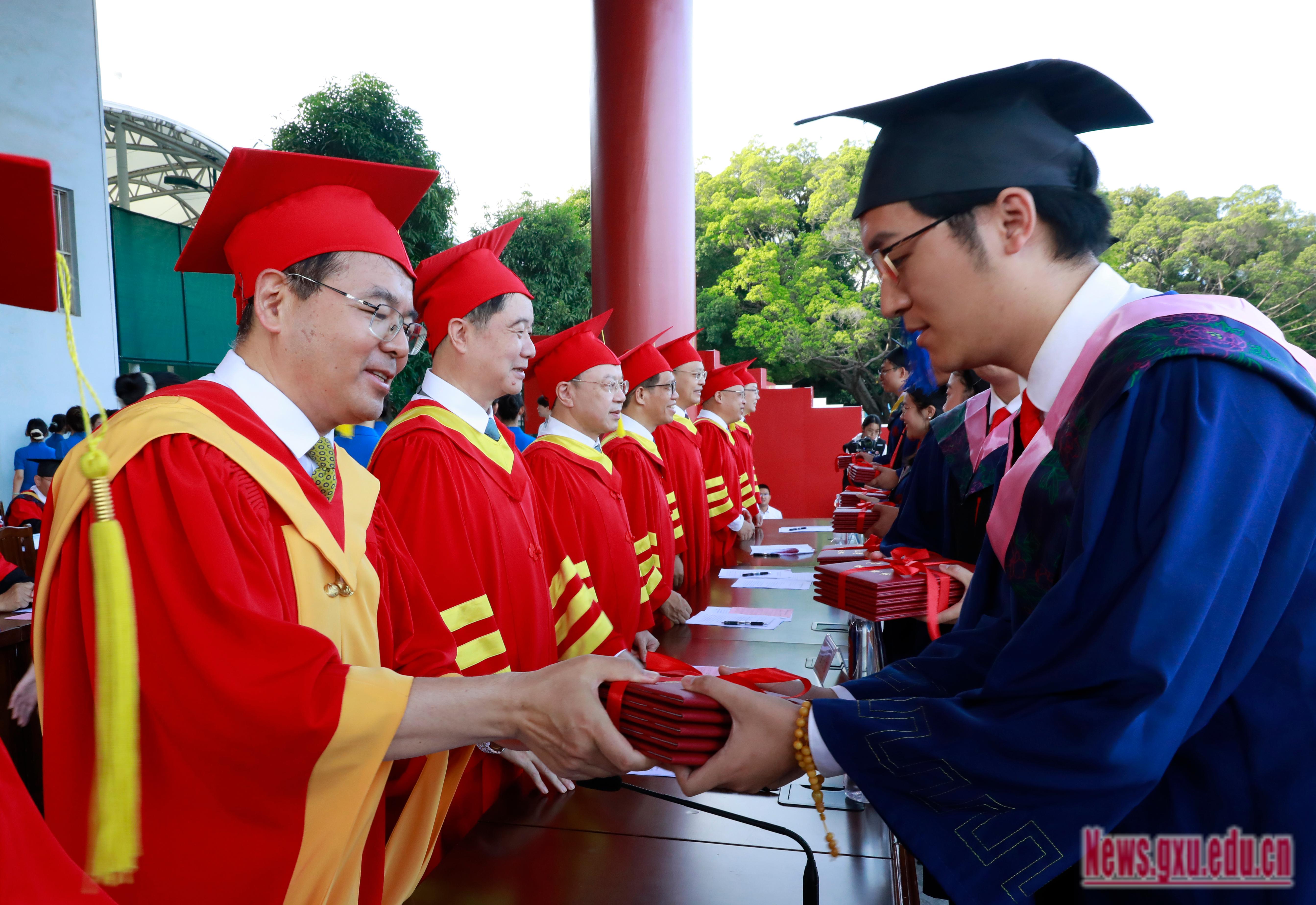 ກ່ອນການອຳລາຄັ້ງນີ້, ທ່ານ Li Guozhong ໄດ້ແບ່ງປັນຄວາມຫວັງ 3 ຢ່າງໃຫ້ບັນດານັກຮຽນທີ່ຈົບການສຶກສາ. ກ່ອນອື່ນໝົດ, ນ້ຳໃຈຮັກຊາດຄວນເປັນກຳລັງຊຸກຍູ້ໃຫ້ບັນລຸຄວາມມຸ່ງມາດປາດຖະໜາ, ນັ້ນແມ່ນ, ຍຶດໝັ້ນໃນຄວາມເຊື່ອຖື, ບືນຕົວຂຶ້ນໃນພາລະກິດສ້າງປະເທດຊາດໃຫ້ເຂັ້ມແຂງ. ຈົ່ງລະນຶກເຖິງຈິດໃຈປະຕິວັດຂອງມະຫາວິທະຍາໄລກວາງຊີ, ປູກຝັງຄວາມເອກອ້າງທະນົງໃຈຂອງຊາດຢ່າງເລິກເຊິ່ງ, ສົມທົບກັນສ້າງ “ຄວາມຮັກແພງປະເທດຊາດ”, “ຄວາມຕັດສິນໃຈສ້າງສາປະເທດຊາດ” ແລະ “ການເຄື່ອນໄຫວຮັບໃຊ້ປະເທດຊາດ”. ຈົ່ງຈື່ຈຳການສົມທົບຄວາມໄຝ່ຝັນດ້ວຍຄວາມພະຍາຍາມອັນໃຫຍ່ຫຼວງໃນການປັບປຸງປະເທດຈີນ, ຮາກຖານຂອງປະຊາຊົນຈີນຢ່າງເລິກເຊິ່ງ, ອຸທິດຕົນເພື່ອປະເທດຊາດ, ສ້າງການເດີນທາງຂອງຊາວໜຸ່ມທີ່ຈະບໍ່ເສຍໃຈ. ສອງ, ຢືນຢູ່ບົນພື້ນຖານການກະທຳທີ່ແທດຈິງ, ອົດທົນ ແລະ ກ້າຫານກ້າວຜ່ານບັນດາສິ່ງທ້າທາຍ. ຊາວໜຸ່ມຕ້ອງມີຄວາມມຸ່ງມາດປາດຖະໜາຢາກເປັນບຸກຄົນທີ່ມີຈິດໃຈປະຕິບັດຕົວຈິງ ແລະ ມີຄວາມສາມາດແກ້ໄຂບັນຫາຕົວຈິງ, ກຽມພ້ອມສູ້ຮົບໃນໄລຍະຍາວ, ກ້າຫານປະເຊີນກັບຄວາມຫຍຸ້ງຍາກ, ເຮັດວຽກໜັກ, ກ້າສ່ຽງໄພຢູ່ຮາກຖານທີ່ມີສະພາບຫຍຸ້ງຍາກ, ເປັນແຖວໜ້າຂອງບັນດາໂຄງການກໍ່ສ້າງປະເທດຊາດ ແລະ ການຄົ້ນຄວ້າວິວັດການ, ມີທັກສະ ແລະ ເຕີບໃຫຍ່ຜ່ານປະສົບການ, ມີຄວາມມານະພະຍາຍາມ ແລະ ປະສົບຜົນສຳເລັດຢ່າງຕັ້ງໜ້າ. ອັນທີສາມ, ເຕີມນ້ຳມັນໃນການເດີນທາງຂອງຊີວິດດ້ວຍການປະດິດສ້າງ. ຈົ່ງກ້າຫານທີ່ຈະສຳຫຼວດ ແລະບັນລຸຄວາມສູງໃໝ່ໃນການສະແຫວງຫາຄວາມຝັນ. ຊາວໜຸ່ມຄວນເປີດເຜີຍຈິນຕະນາການ ແລະ ຄວາມຄິດປະດິດສ້າງ, ຈູດໃຈຄວາມມັກໃນການປະດິດສ້າງ, ແລະ ນຳໃຊ້ທ່າແຮງ, ບຸກເບີກບັນດາຮູບແບບ ແລະ ປະຕິບັດຢ່າງກ້າຫານ. ສະສົມປະສົບການໂດຍຜ່ານການປະດິດສ້າງແລະບັນລຸຜົນໄດ້ຮັບທີ່ມີຄວາມຫມາຍ. ຄົ້ນພົບ, ສ້າງແລະກ້າວຫນ້າຢ່າງຕໍ່ເນື່ອງ. ຂໍໃຫ້ນະວັດຕະກໍາເປັນລົມແຮງທີ່ພັດເອົາເຮືອຂອງການເດີນທາງຂອງໄວຫນຸ່ມ.