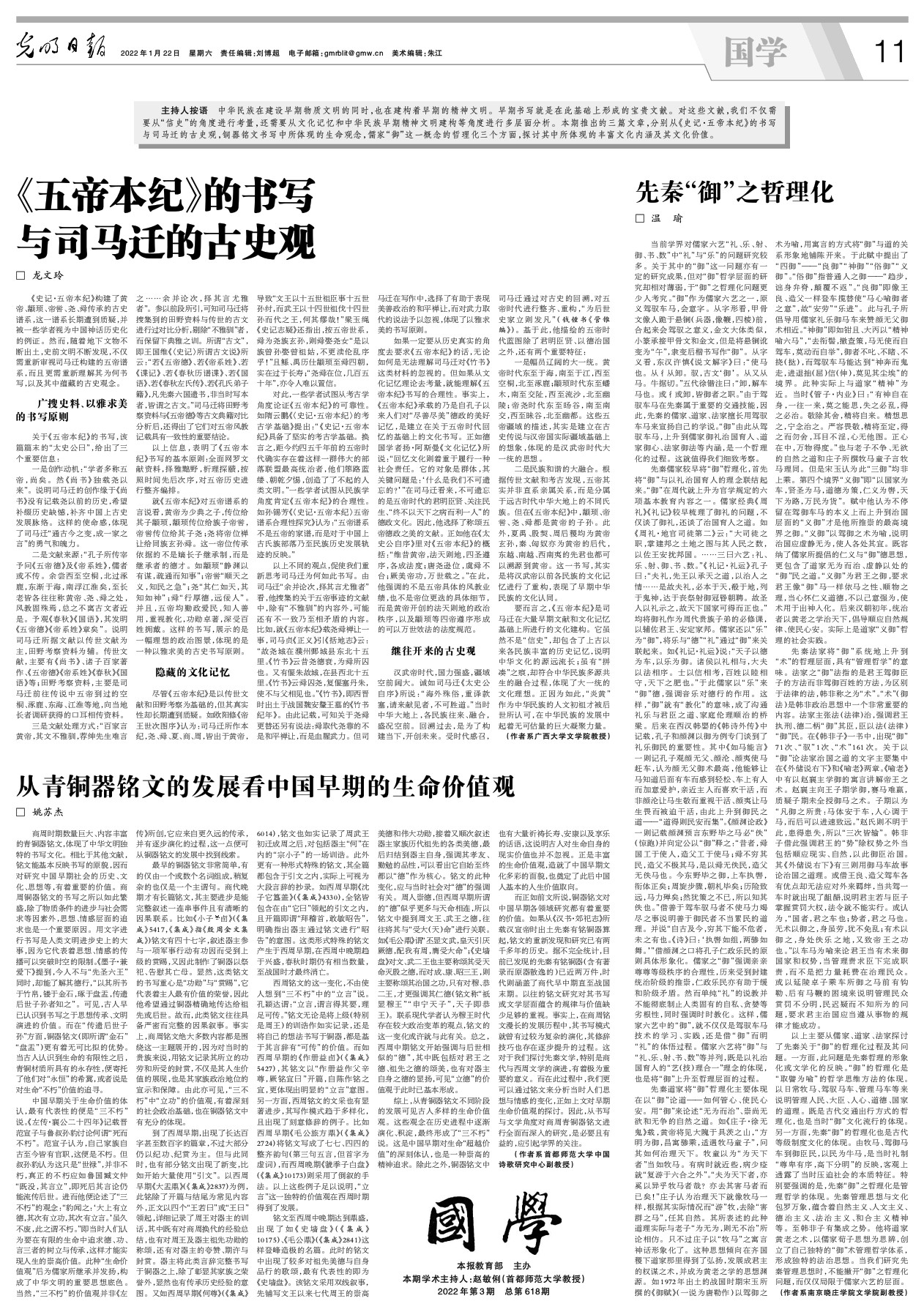 三是文献处理方式:“百家言黄帝,其文不雅驯,荐绅先生难言之……余并论次,择其言尤雅者”。参以前段所引,可知司马迁将搜集到的田野资料与传世的古文进行过对比分析,剔除“不雅驯”者,而保留下典雅之训。所谓“古文”,即王国维《〈史记〉所谓古文说》所云:“若《五帝德》、若《帝系姓》、若《谍记》、若《春秋历谱谍》、若《国语》、若《春秋左氏传》、若《孔氏弟子籍》,凡先秦六国遗书,非当时写本者,皆谓之古文。”司马迁将田野考察资料与《五帝德》等古文典籍对比分析后,还得出了它们对五帝风教记载具有一致性的重要结论。