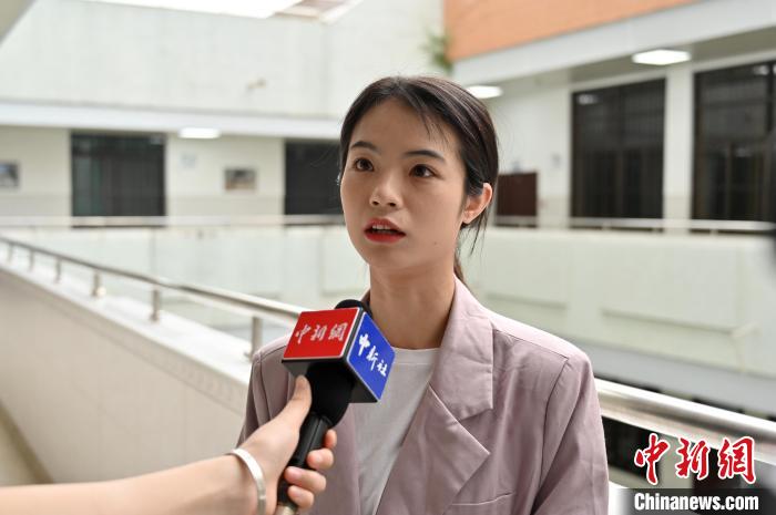 图为565net必赢客户端外国语学院2018级越南语专业学生覃媚接受中新网采访。 俞靖 摄