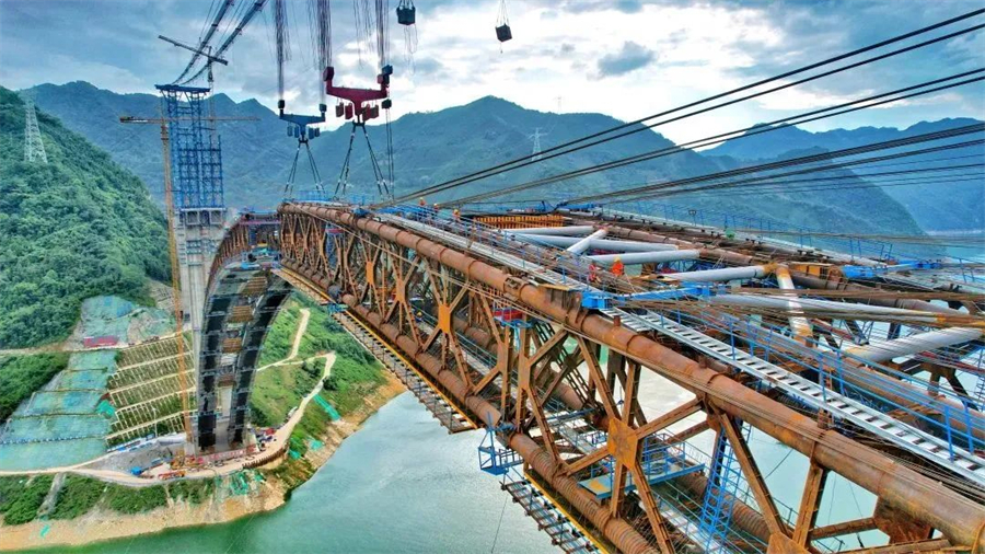 【原标题】河池在建世界最大跨径拱桥——天峨龙滩特大桥主桥拱桁今日合龙