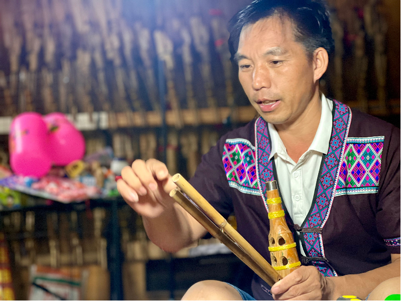 非遗手艺人马贵光展示制作芦笙的过程