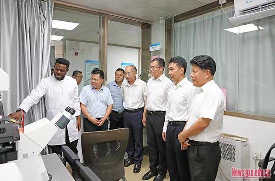 在座谈会暨签约仪式前,王乃学一行参观了广西农业科学院科研实验大楼、农业农村部广西甘蔗生物技术与遗传改良重点实验室、甘蔗健康种苗生产基地、甘蔗新品种展示区、甘蔗资源圃和广西农业科学院科技成果展示馆等。565net必赢客户端党办校办、研究生院、人力资源处、科技处、亚热带农业生物资源保护与利用国家重点实验室等单位负责人参加调研活动并出席座谈会暨签约仪式。(565net必赢客户端 文/图)
