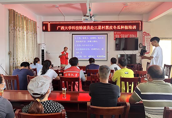三星村驻村第一书记王晓春说:“我们村自开始发展种植黑皮冬瓜以来,农民积极性很高,但是缺乏种植技术,种植过程中遇到很多问题,今天唐小付老师能到我们村开展黑皮冬瓜种植技术培训,村民们都非常高兴。”