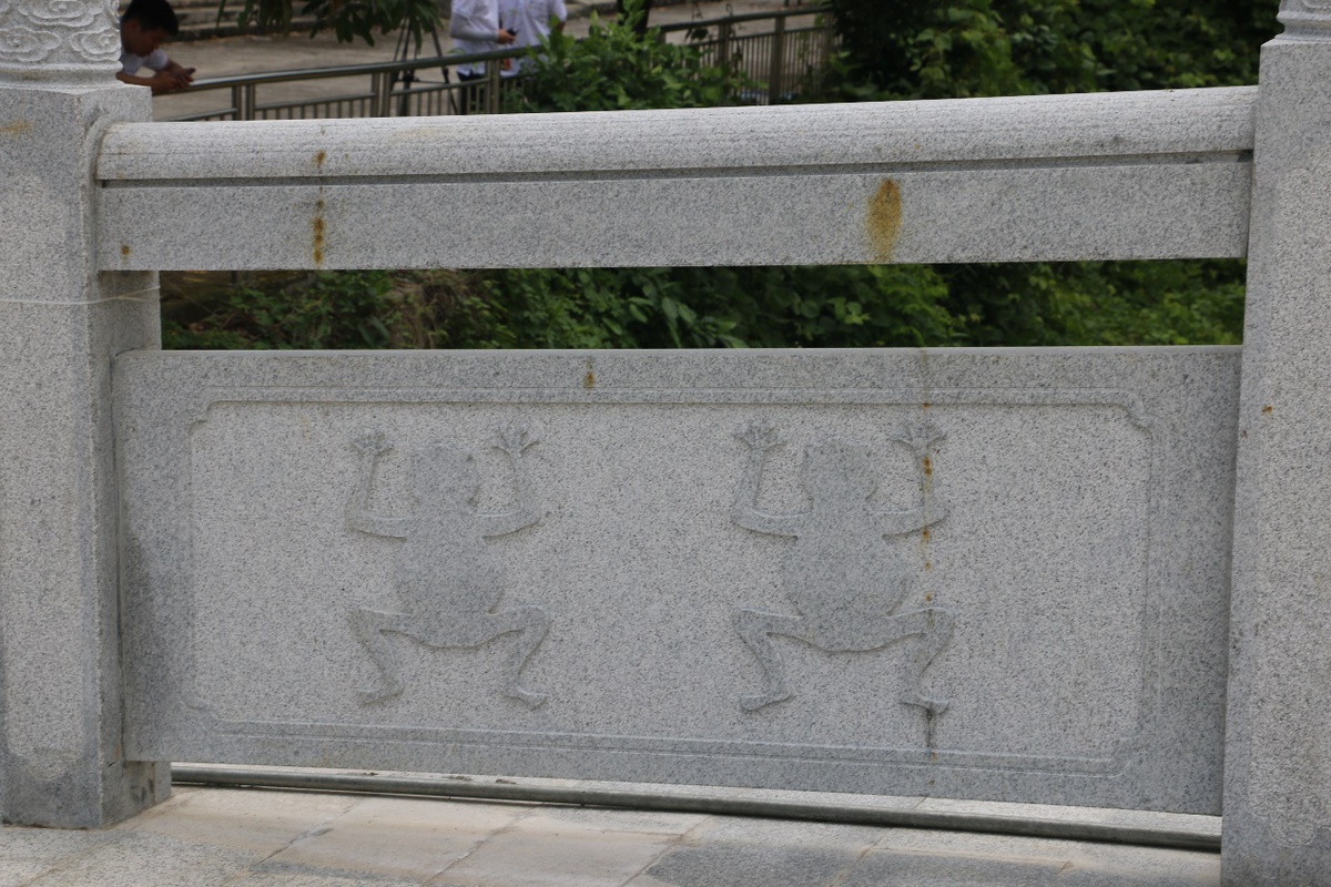 在院士桥的桥身上,篆刻着一些形似青蛙的图腾,这是壮族特色的“蚂拐”文化的标志。蚂拐,是壮族人民对青蛙的俗称。纳洞村村支书索文龙告诉调研团,纳洞村被称为“蚂拐第一村”,广西壮族自治区红水河蚂拐文化的起源地就是纳洞村。在新冠疫情之前,每年都会在村里举行隆重的蚂拐文化节。文化节期间,村里会迎来两万多游客前来参加活动,极大地带动了村里的旅游业发展,让家家户户增收不少。