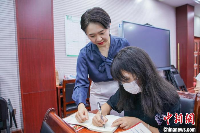 图为马来西亚华裔教师钟青芯在指导学生。 陈冠言 摄