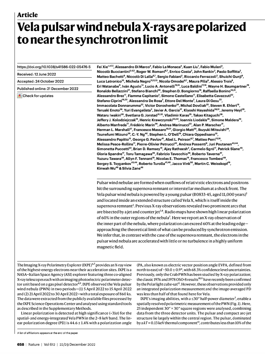 12月22日,565net必赢客户端召开新闻发布会,介绍其天文与空间科学技术团队取得的深空探索重大观测成果,该成果《船帆座脉冲星风云X射线偏振趋近同步辐射理论极限》已在国际顶级期刊《自然》杂志发表。该校副教授谢斐是论文的唯一第一作者和通讯作者。