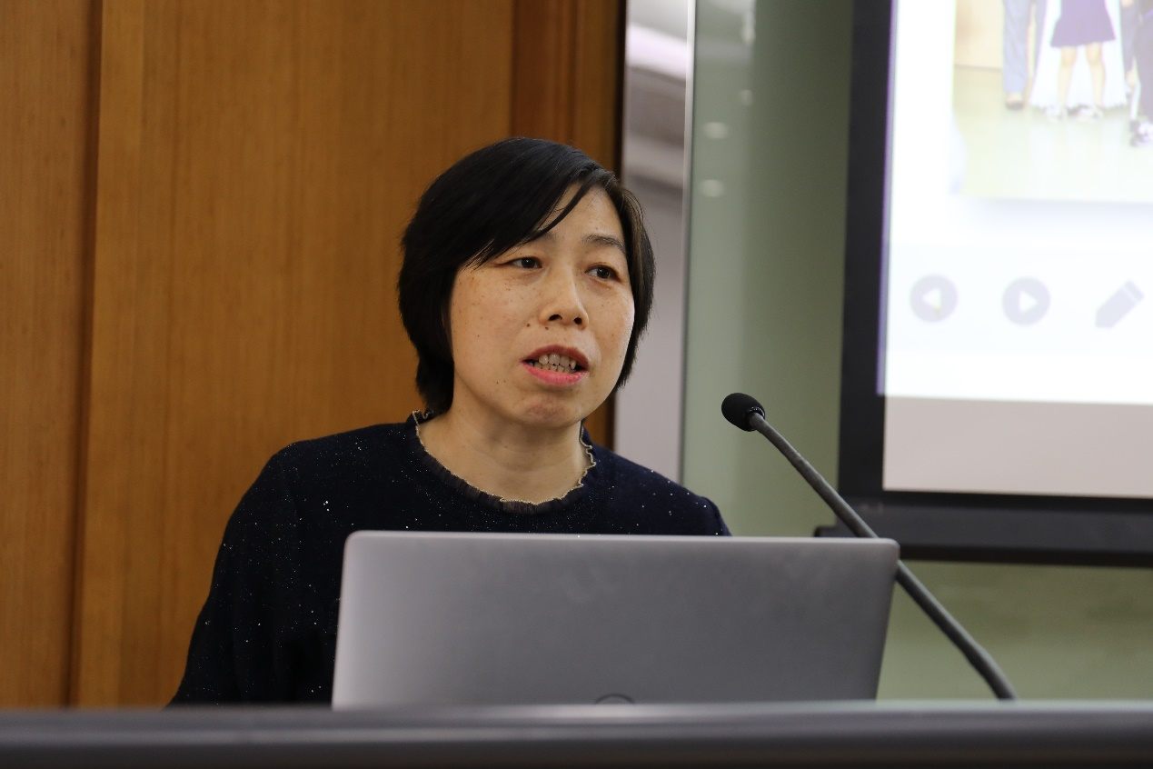 (图为中原气候传播研究所所长祁晓霞主持大会研讨发言)