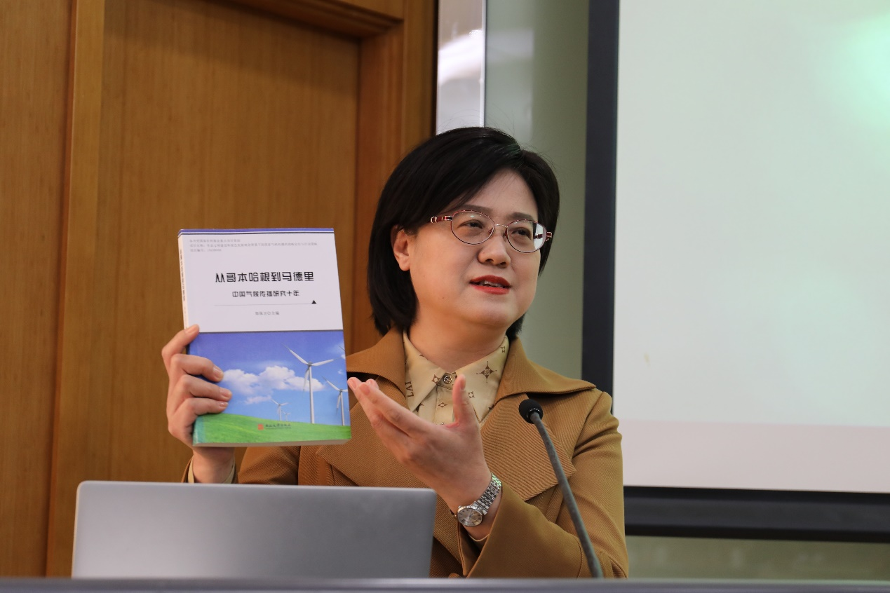 (图为清华大学气候变化与可持续发展研究院王彬彬副研究员作为中国气候传播项目中心代表发言)