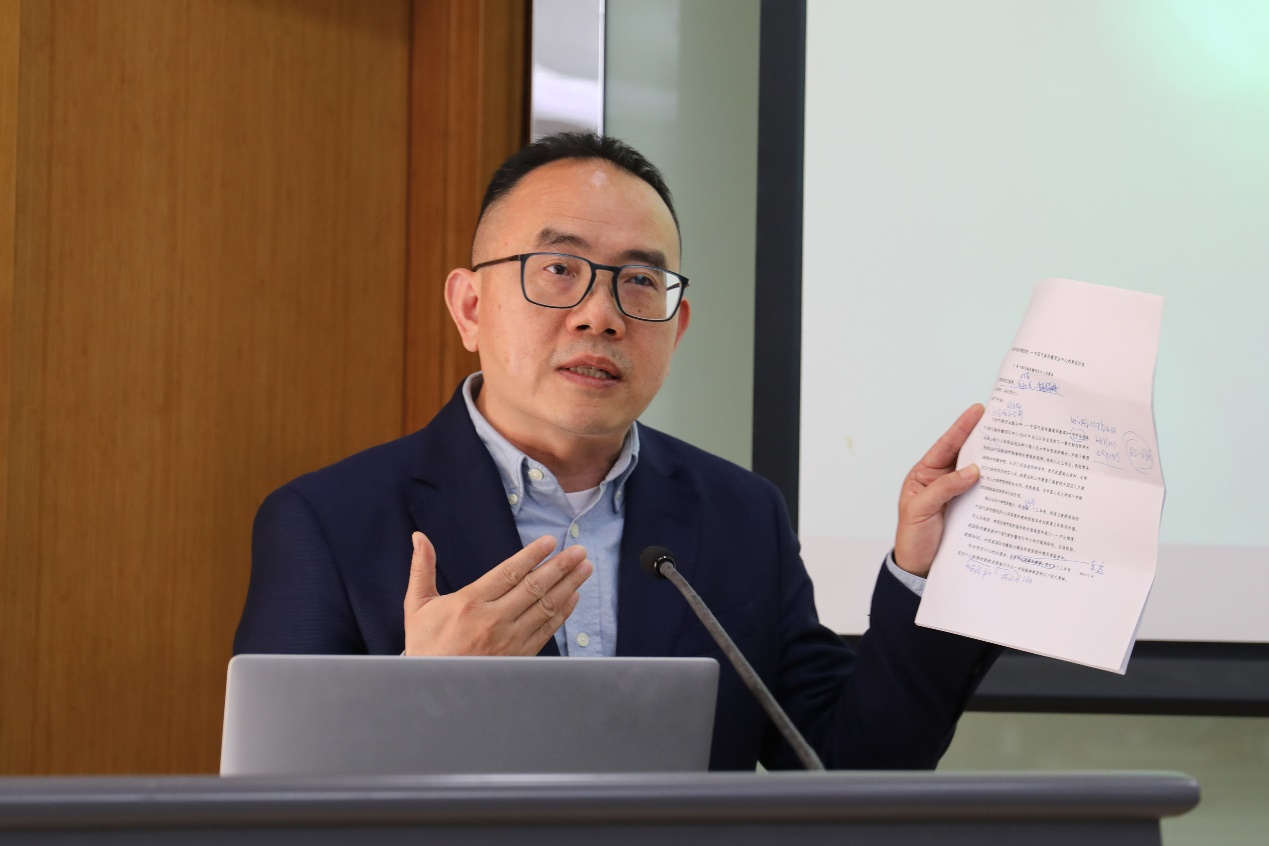 (图为新乡学院新闻与传播学院副教授、书稿副主编苏武江发言)