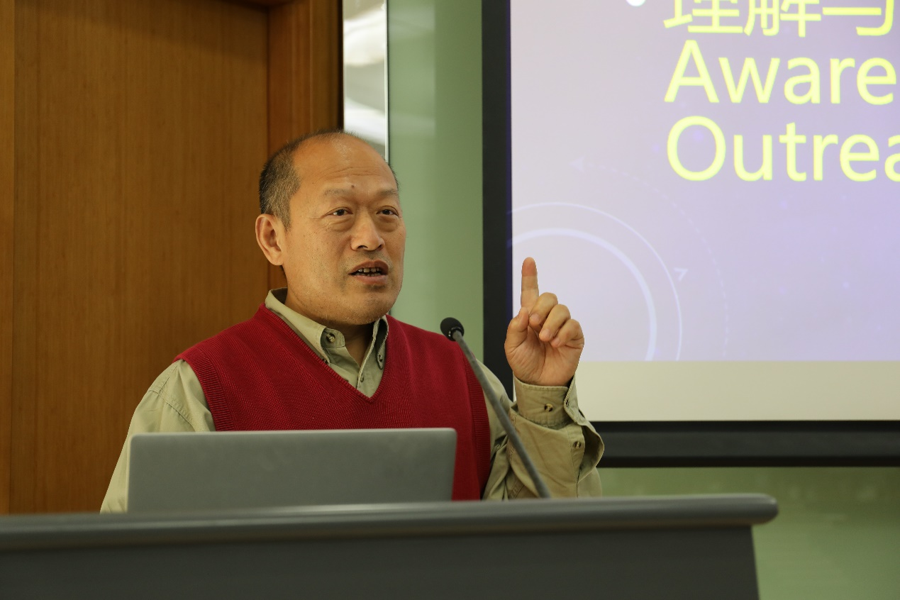 (图为中国国际民间组织合作促进会名誉理事长黄浩明教授作主题演讲)