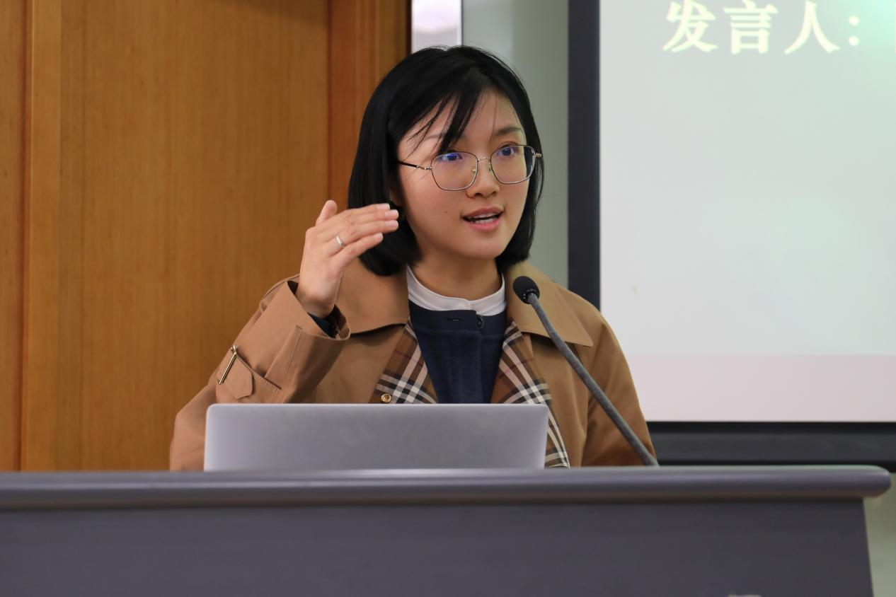 (图为中国气候传播项目中心志愿者付敬作主题演讲)