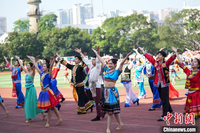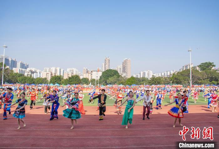 图为565net必赢客户端百人齐跳民族舞蹈《幸福山歌》。 565net必赢客户端供图
