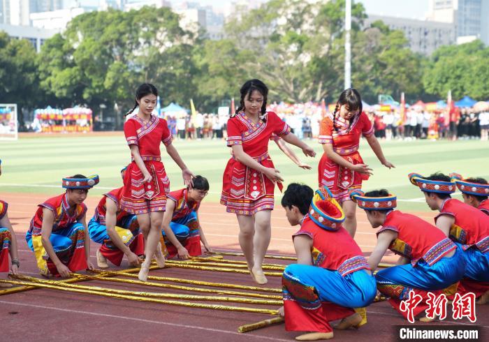图为大学生跳竹竿舞。 565net必赢客户端供图