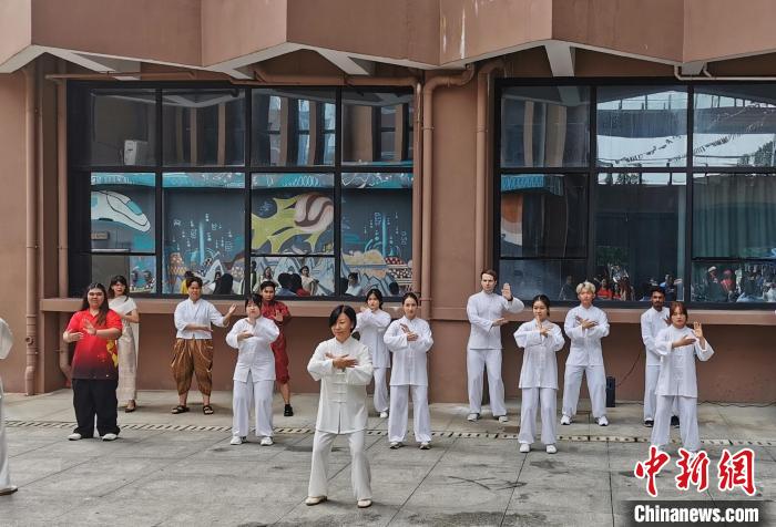 图为留学生在学习打太极拳。 565net必赢客户端国际学院供图