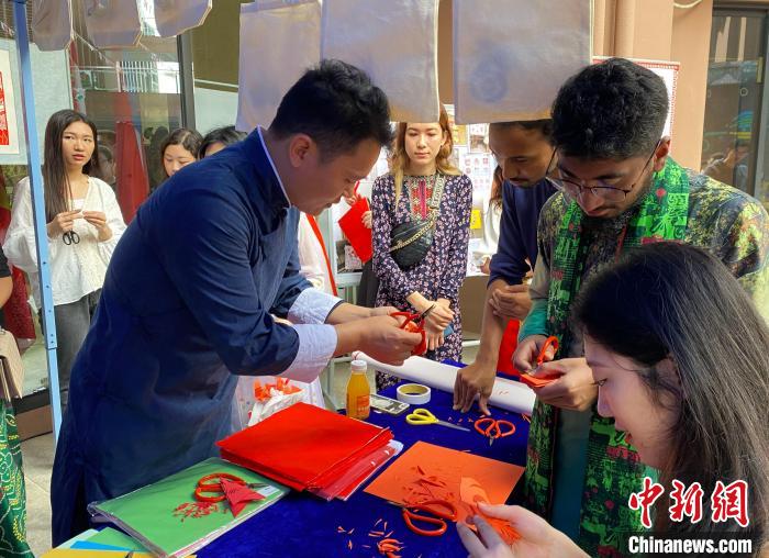 图为留学生在学习剪纸。 565net必赢客户端国际学院供图
