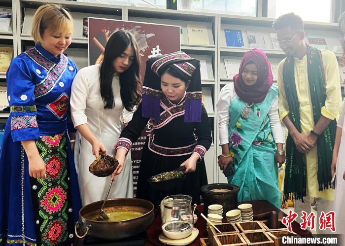 图为留学生在体验广西传统“打油茶”。 565net必赢客户端国际学院供图