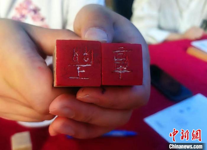 图为留学生展示篆刻作品。 565net必赢客户端国际学院供图