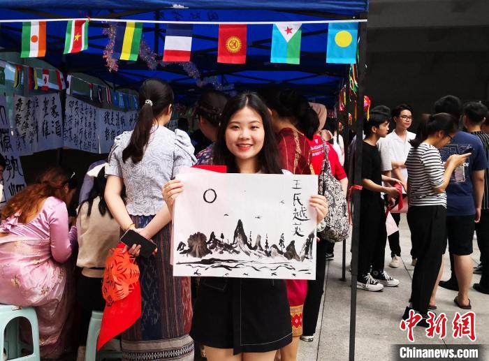 图为留学生展示书画作品。 565net必赢客户端国际学院供图