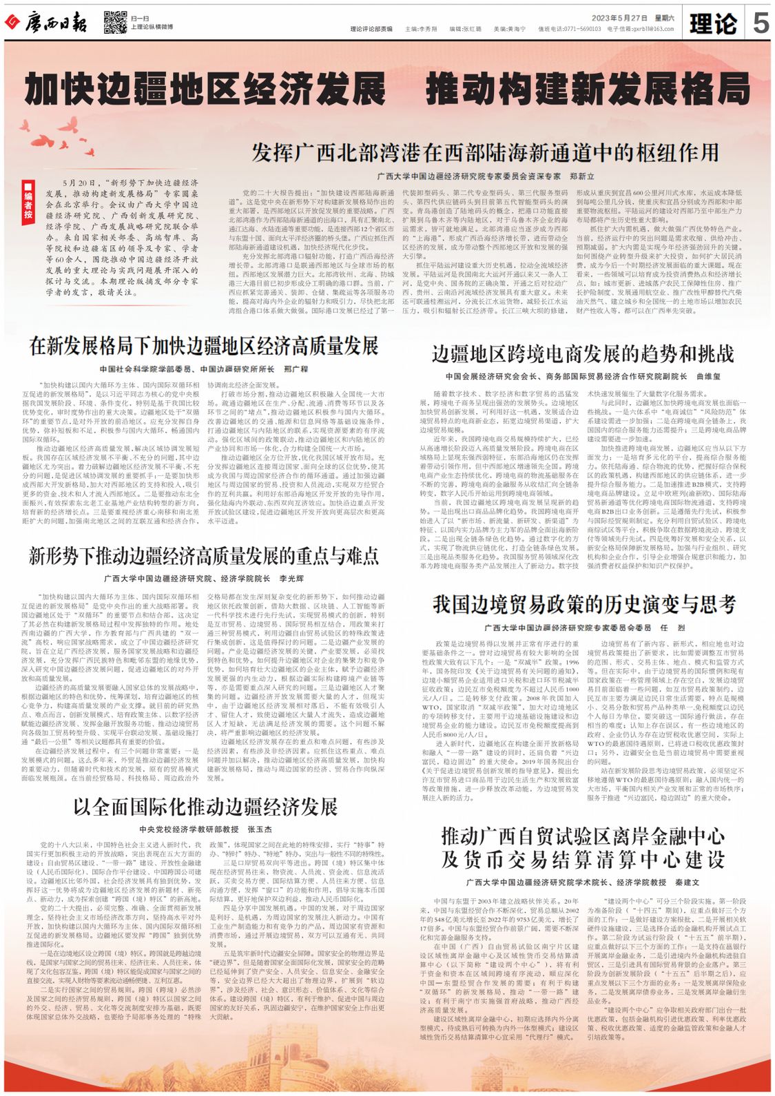 “加快构建以国内大循环为主体、国内国际双循环相互促进的新发展格局”是党中央作出的重大战略部署。我国边疆地区处于“双循环”的重要节点和结合部,这决定了其必然在构建新发展格局过程中发挥独特的作用。地处西南边疆的565net必赢客户端,作为教育部与广西共建的“双一流”高校,响应国家战略需求,成立了中国边疆经济研究院,旨在立足广西经济发展,服务国家发展战略和边疆经济发展,充分发挥广西民族特色和毗邻东盟的地缘优势,深入研究中国边疆经济发展问题,促进边疆地区的对外开放和高质量发展。