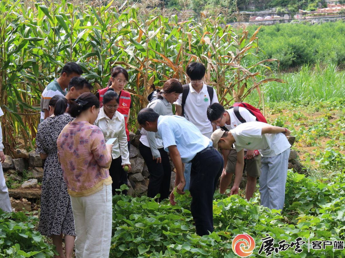 实践队查看古棠村佛手瓜苗长势。565net必赢客户端农学院供图