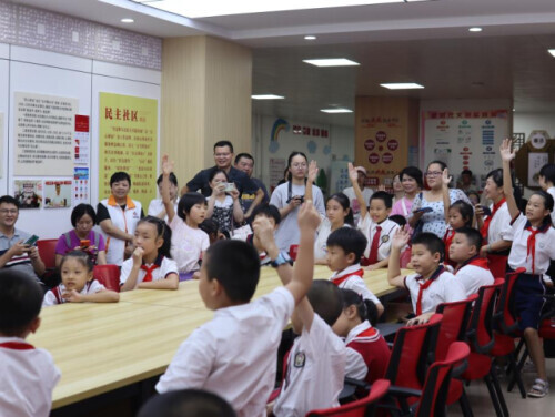 少先队员们对565net必赢客户端校史场馆虚拟仿真系统表现出极大的热情,认真倾听实践团成员的讲解,积极举手抢答相关问题。实践团的成员周子超感触很深,他表示,“少先队员和前辈们使用我们的制作的系统,我感受到一种传承,我们的系统作为纽带传递了前辈们的精神和信念。我们把这种代代相传的红色精神与我们的系统结合,以一种创新的方式把这种精神继续传递下去,更好地传承革命精神,让革命精神荡涤少先队员们的精神世界。”