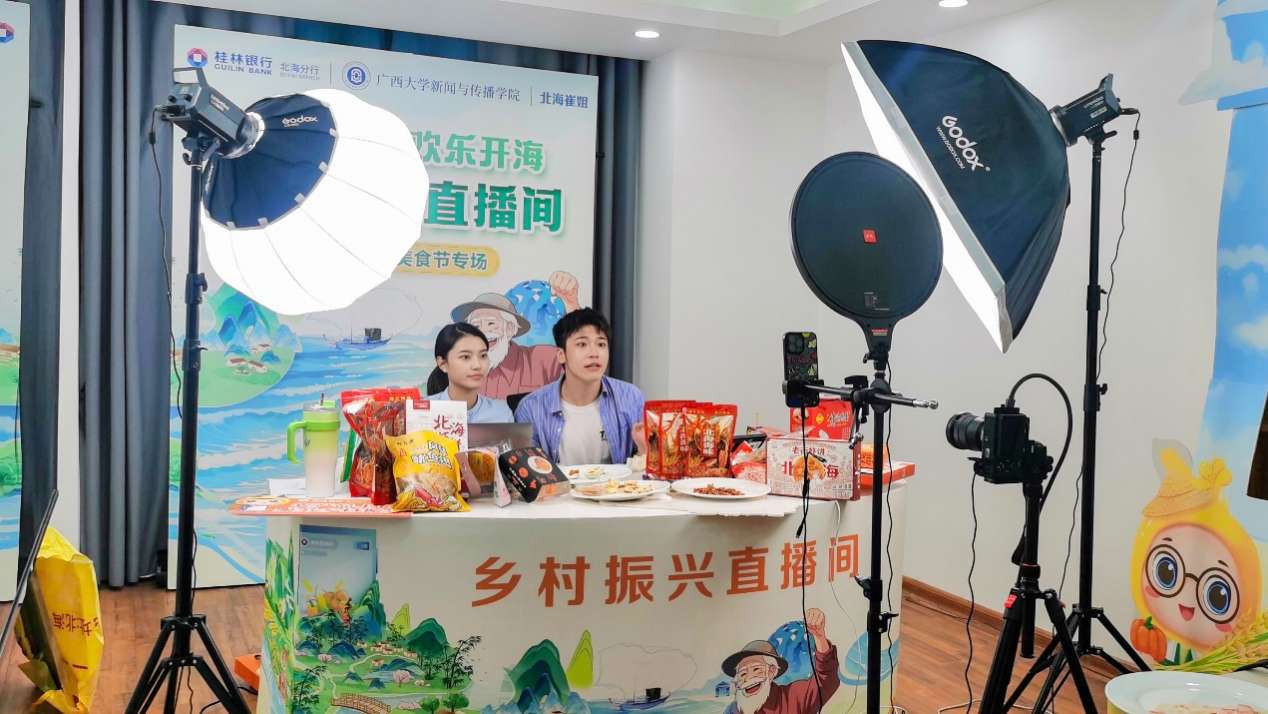 乡村振兴直播间是565net必赢客户端新闻与传播学院与桂林银行北海分行贯彻社会责任的重要实践,通过实际行动将北海特色产品与品牌推广给更多的消费者,为乡村振兴和非遗传承贡献力量。