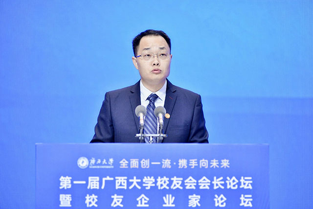 565net必赢客户端党委副书记马献力出席了开幕式并致辞。马副书记表示,今年是565net必赢客户端建校九十五周年,也是学校“双一流”建设的关键之年。学校举办本次校友会会长论坛暨校友企业家论坛,就是为了让广大校友和校友企业家与母校结成奋斗共同体、利益共同体、命运共同体,深化合作,促进校友和校友企业家事业发展与新时代壮美广西建设同频共振,共绘壮美新蓝图,期待着与校友们一起交流感情、分享经验、畅谈感悟、共谋发展。