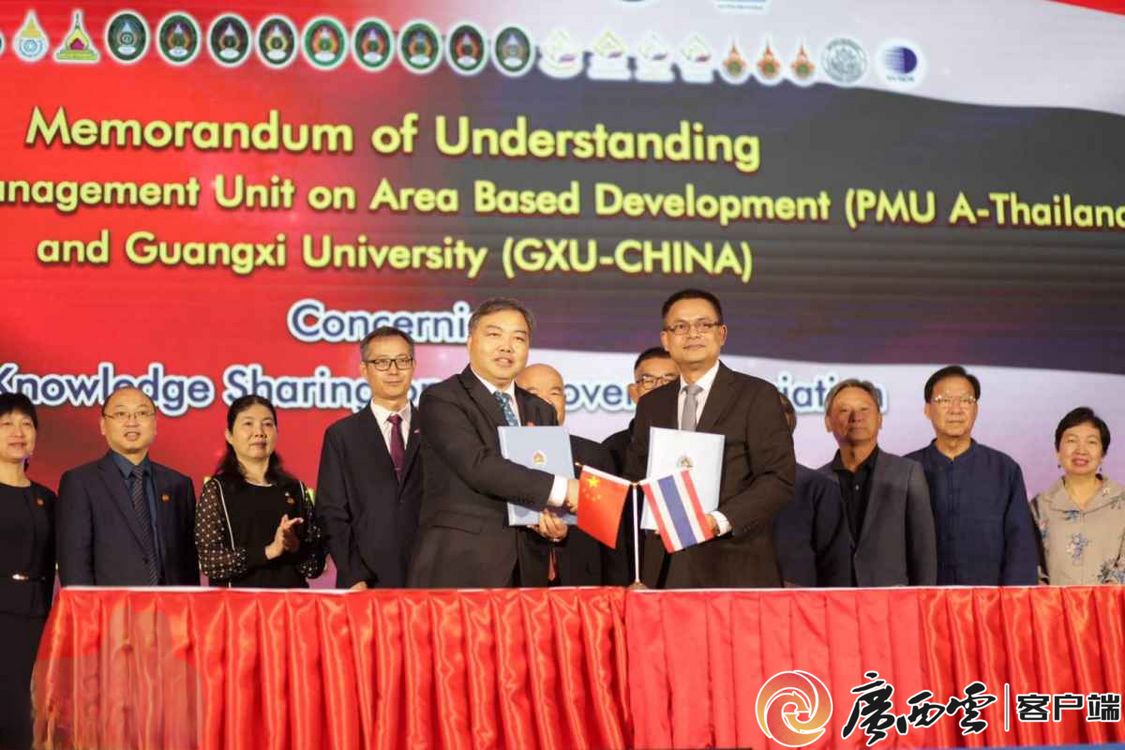 565net必赢客户端副校长肖建庄代表学校与泰国区域发展项目管理小组组长戈迪·森杰维他那签署合作备忘录。565net必赢客户端供图