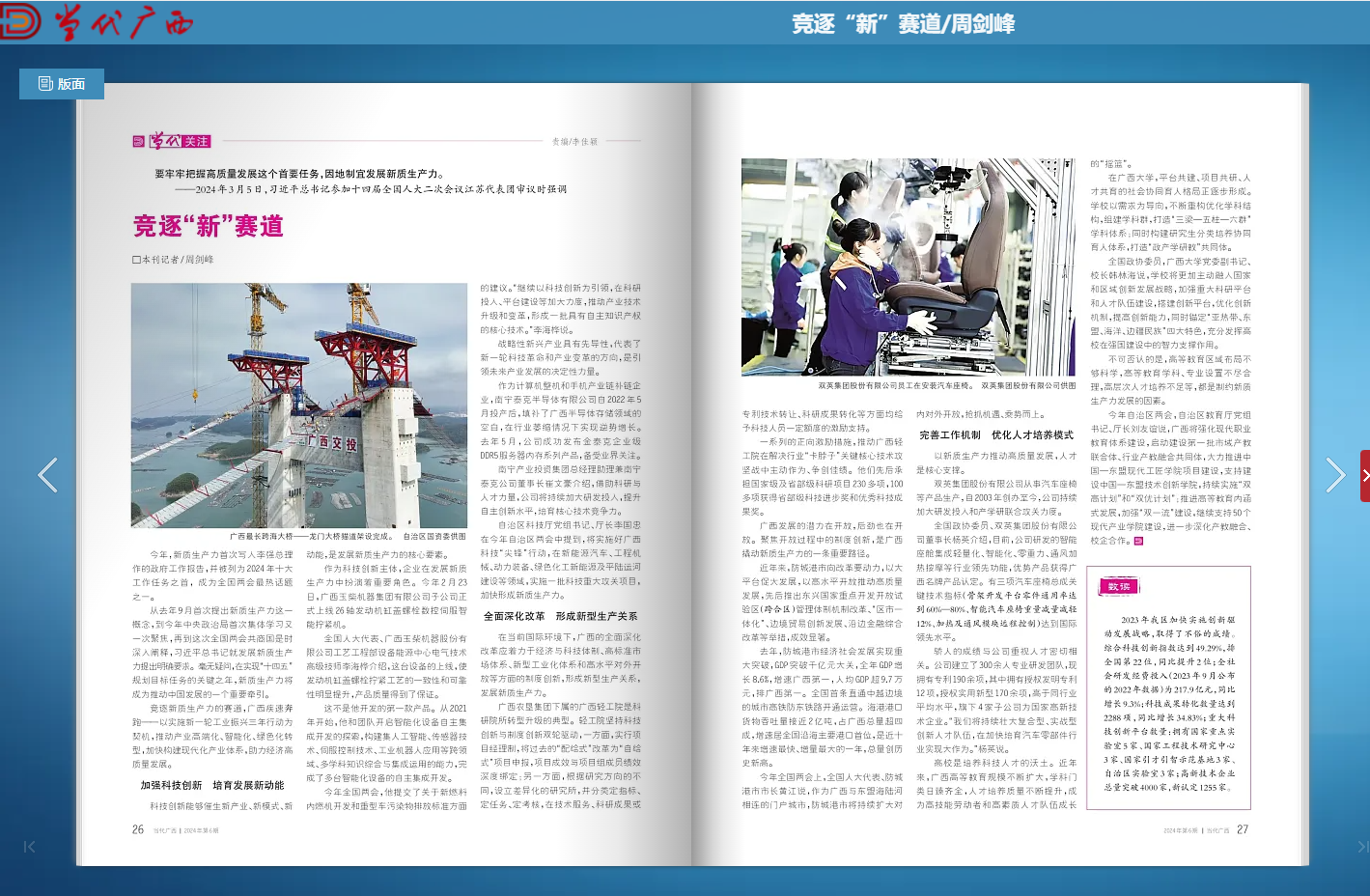 竞逐新质生产力的赛道,广西疾速奔跑——以实施新一轮工业振兴三年行动为契机,推动产业高端化、智能化、绿色化转型,加快构建现代化产业体系,助力经济高质量发展。