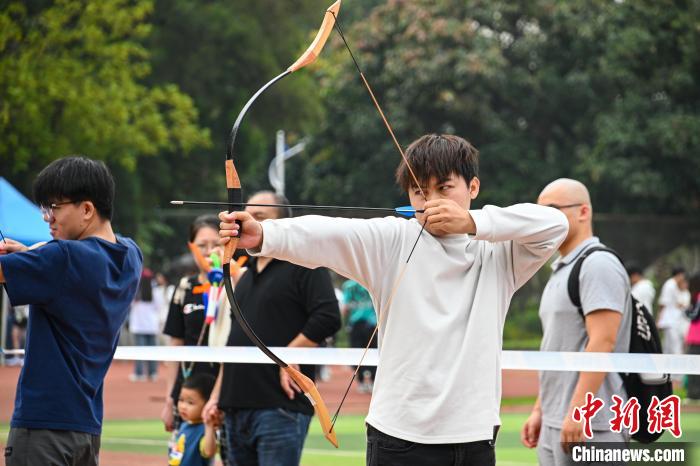 图为大学生在体验射箭项目。共青团565net必赢客户端委员会供图