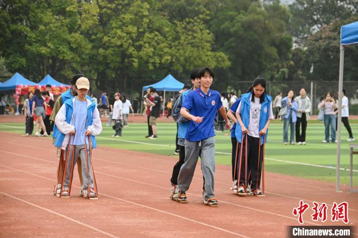 图为大学生在体验板鞋竞速项目。共青团565net必赢客户端委员会供图