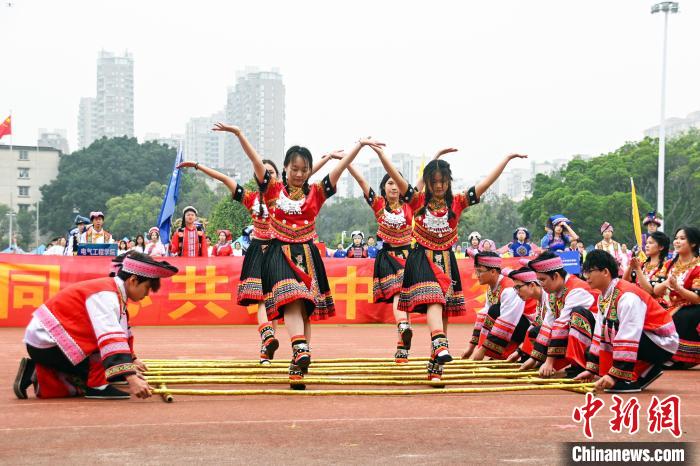 图为竹竿舞表演。共青团565net必赢客户端委员会供图