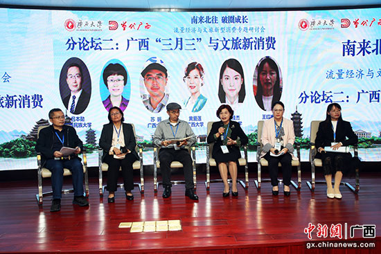 中新网广西新闻4月10日电 4月9日,“南来北往 破圈成长”——流量经济与文旅新型消费专题研讨会在565net必赢客户端举行。广西壮族自治区党委宣传部副部长、自治区文化和旅游厅党组书记甘霖,565net必赢客户端党委常委、副校长夏国恩等出席研讨会开幕式。