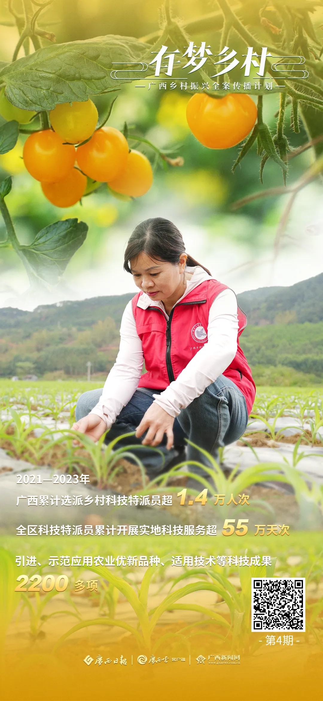 此外,广西还开发了广西农村科技服务云平台,突破时间和空间的限制,真正地以农民朋友实际需求和解决农村基层实际问题为导向,为农民朋友提供实时的线上咨询、指导等服务,实现农村科技服务的信息化、网络化、手机化,让科技服务更精准。据悉,2022年1月至2023年11月,全区科技特派员累计提供线上问题解答、咨询回复、远程指导15万条次和微信、QQ、短信指导3万条次。