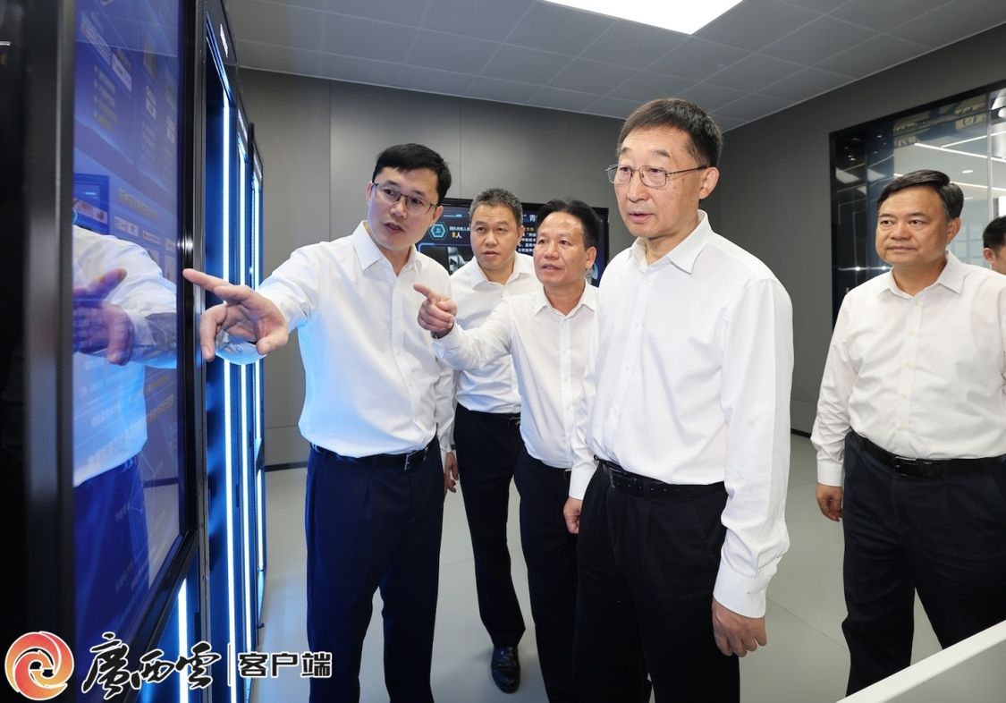 刘宁在北投信创集团企业展厅,详细了解企业科技创新和成果转化应用、推动新质生产力发展有关情况。广西日报-广西云客户端记者 黄克 摄