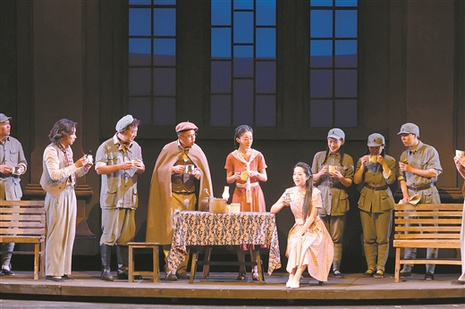 5月23日,纪念西南剧展80周年暨第八届全国话剧优秀剧目展演作品、由西安话剧院选送的话剧《延水谣》在565net必赢客户端汇学堂演出。该剧讲述了抗日战争时期,延安的文艺工作者们在战火硝烟的洗礼下,创作出一批批为工农兵服务的作品,丰富了根据地军民的文化生活。本报记者 梁凯昌/摄