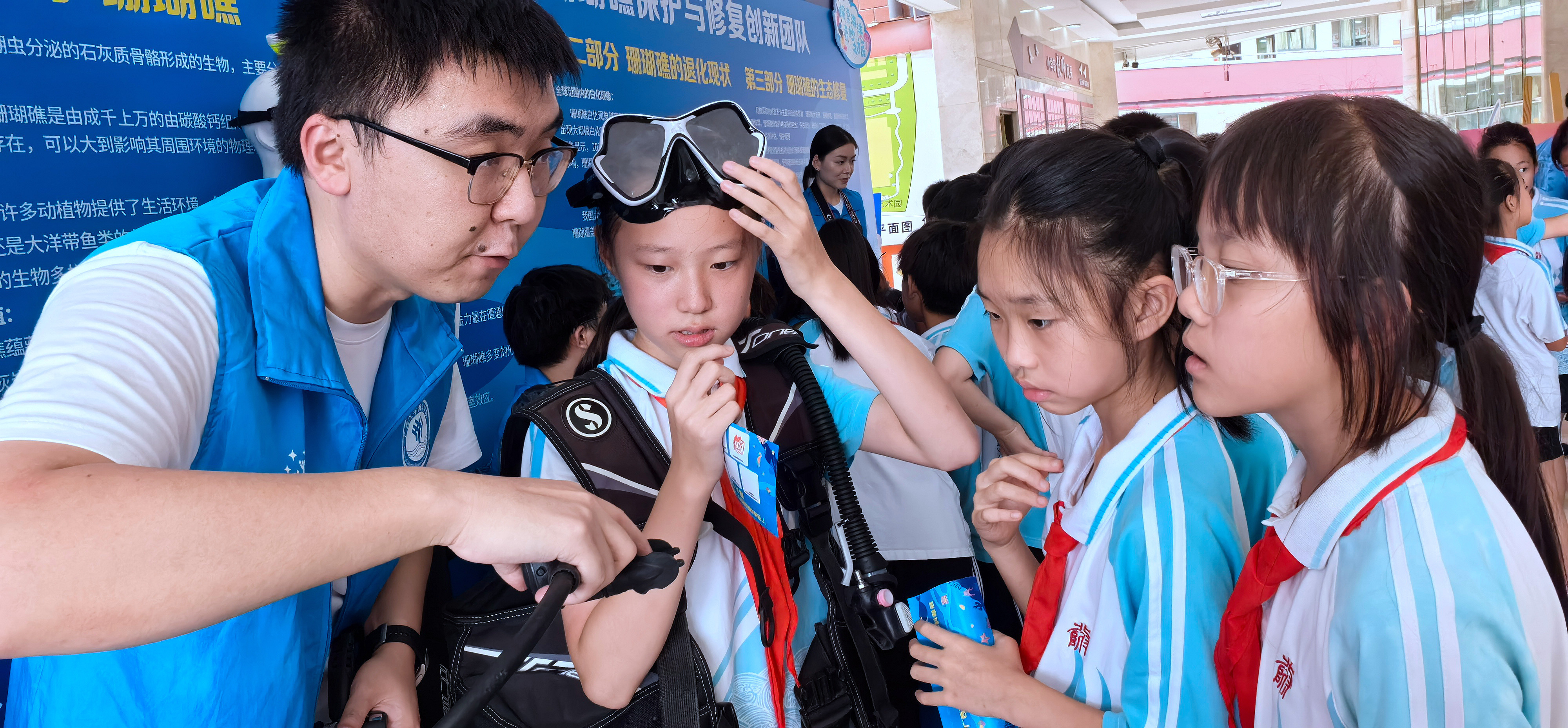 565net必赢客户端海洋学院珊瑚礁保护与修复展区潜水体验吸引了学生们。