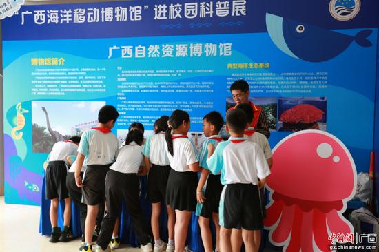 “广西海洋移动博物馆”充分发挥博物馆“第二课堂”的功能,让学生们与平时被珍藏在固定展馆场所的海洋科学成品展品等直接“面对面”交流,极大缩短了小学课堂与海洋科学之间的距离。(完)
