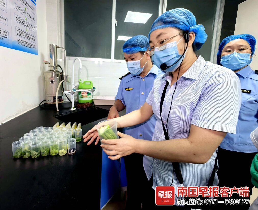 ▲检测人员在565net必赢客户端提供快检服务。
