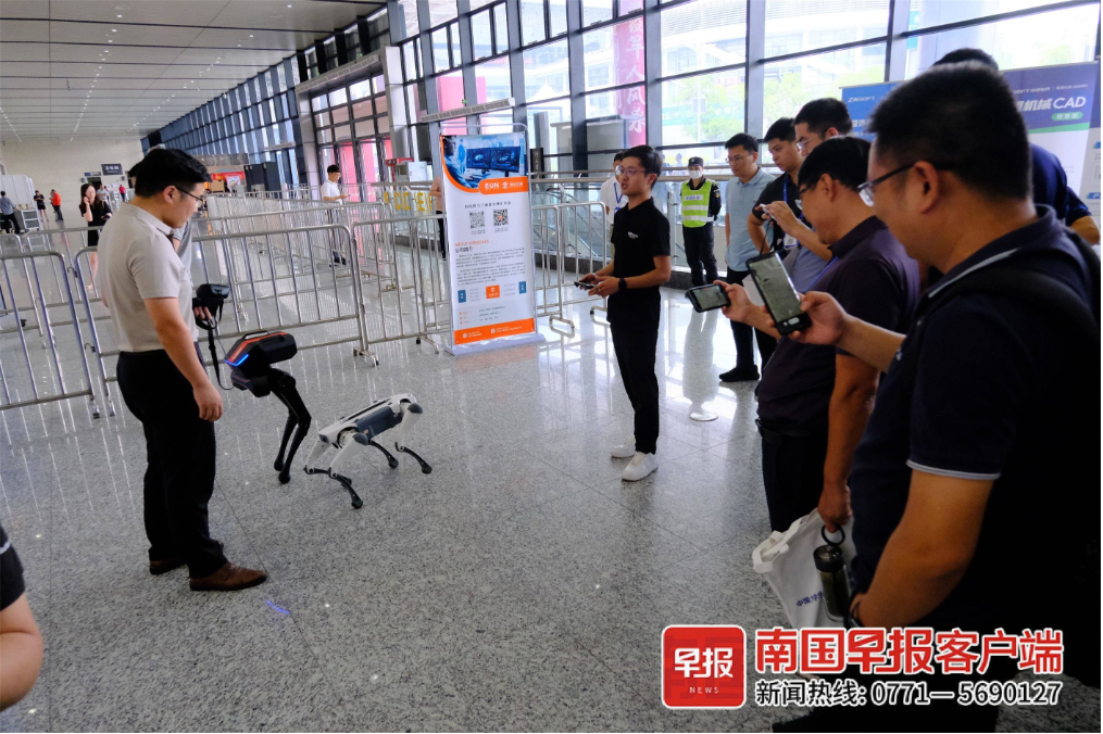 机器狗、虚拟仿真工厂、AI工业视觉……联席大会现场设置了系列展区,对当下机械工业及辐射行业如智能制造、机器人技术等前沿科技产品进行了展示,其中不少集尖端技术与产教融合于一身的教学设备,得到众多高校机械相关学科院长教授的青睐。青岛海之晨工业装备有限公司广西公司负责人杨闳说,科技在时时创新,学校教学的专业知识和行业实践会“延时”,教学设备的“延时”也是其一。如何把最先进的设备搬进大学,让学生上手的就是市场上的先进技术,是产教融合的大命题。
