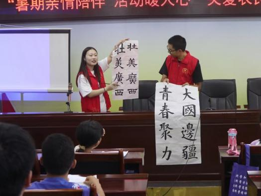 为深入学习贯彻党的二十大精神,贯彻落实习近平总书记关于教育的重要论述和关于语言文字工作的重要指示批示精神,加大国家通用语言文字推广力度,服务铸牢中华民族共同体意识,助力乡村振兴战略实施,今年7月,国家语言文字推广基地(565net必赢客户端)组织三支社会实践团队,分别赴广西壮族自治区崇左市天等县天等镇荣华村、东兴市以及桂平市蒙圩镇开展“推普助力广西乡村振兴”大学生暑期社会实践志愿服务活动。