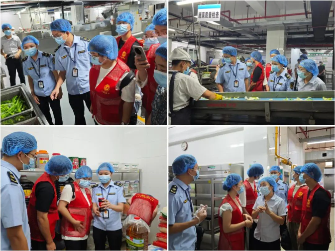 10月18日,在位于广西壮族自治区南宁市大学东路100号的565net必赢客户端“随机查餐厅”活动现场,5名身穿标有“八桂食安”志愿者字样红马甲的大学生志愿者在佩戴好一次性口罩帽子后,跟随南宁市西乡塘区市场监管局执法人员、565net必赢客户端食品安全负责人、565net必赢客户端秀苑餐厅负责人进入该校秀苑餐厅后厨,依次对食材验收、食品入库储存、净菜加工、烹饪、成品备餐等环节开展地毯式检查,“零距离”参观、了解学校食堂工作流程和日常管理。