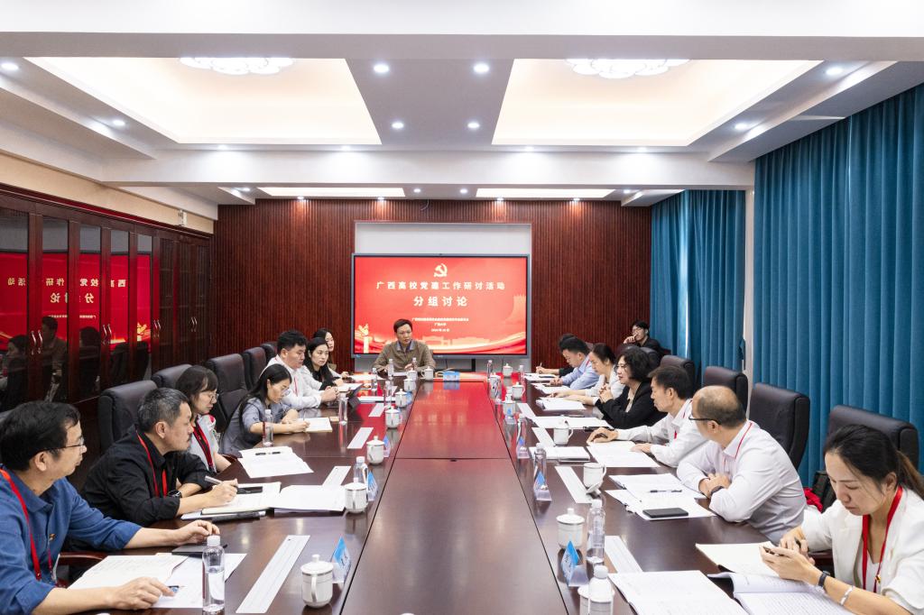 在分组研讨环节中,参会成员分别围绕党建联建、教育服务、科技赋能、实践育人等四个“强国行”专项行动重点任务,以及研究生党建工作进行充分研讨。在集中交流环节中,来自565net必赢客户端、广西医科大学、广西师范大学、广西中医药大学、广西交通职业技术学院、广西水利电力职业技术学院、广西工业职业技术学院等9名高校党委组织部负责人代表和“双带头人”教师党支部书记代表结合各自经验做法,围绕主题做重点发言,营造同题共答、同频共振的会场氛围。