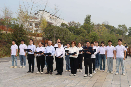 仪式后,全体党员重温入党誓词。接着,师生们齐声朗诵了《湘江之歌》。“一草一木一忠魂,一山一石一丰碑”……通过朗诵,大家仿佛看到了红军战士们浴血奋战的英勇身影,感受到了他们坚定的革命信念和无私的奉献精神。师生们用声音传递出对英雄们的无限缅怀和敬仰,表达了对中国共产党精神的坚定传承和发扬光大的决心。
