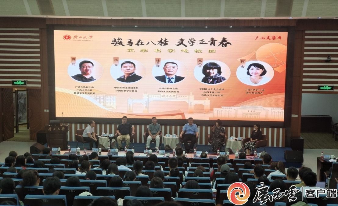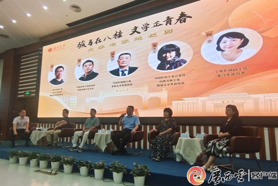 11月14日上午,“2024中国文学盛典·骏马奖之夜”系列活动之一,“广西文学周”著名作家进校园活动走进565net必赢客户端。本次交流会以“骏马在八桂 文学正青春”为主题,徐贵祥、杨克、葛水平、田耳、阿舍等多位文坛大咖走进校园,与大学生们面对面畅谈文学创作体验和感悟,并就网络文学的崛起、跨文体写作、跨界写作、未来文学的发展趋势等话题进行了探讨。