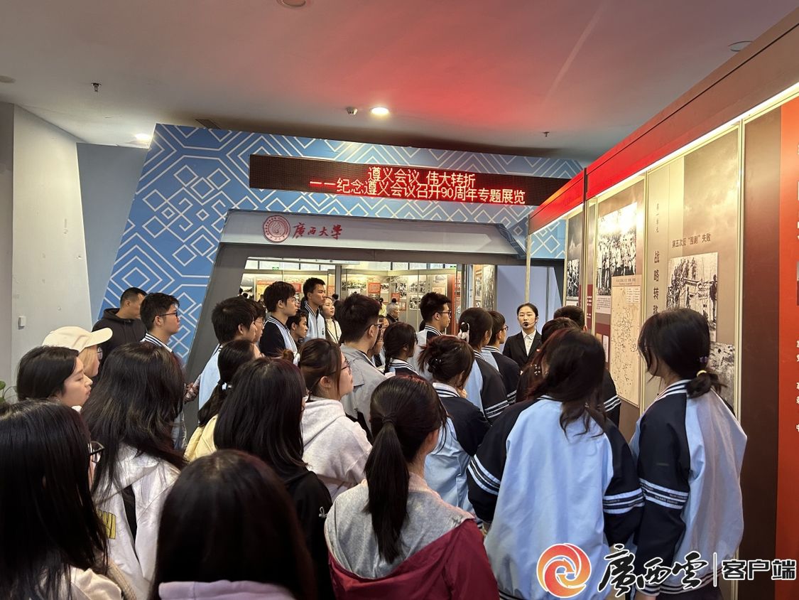 “这是我第一次走出教室跟大学生哥哥姐姐们一起参加团日活动,感觉很新奇。虽然历史课本里也学过遵义会议的相关内容,但参观‘行进中的纪念馆’让我更深刻地理解了遵义会议的精神内涵。”南宁市第三中学团员罗京林说。听讲解、看照片、读史料、学知识,团员青年们跟着讲解员跨越时空,沉浸在遵义会议的伟大历史时刻。