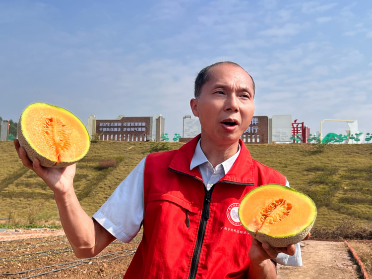 为了让优质农产品得到更好的推广,唐小付还邀请了河池市南丹县城关镇莲花村驻村第一书记谢万举等一行人来到平陆运河,展示网纹甜瓜的科学种植方法及成果。